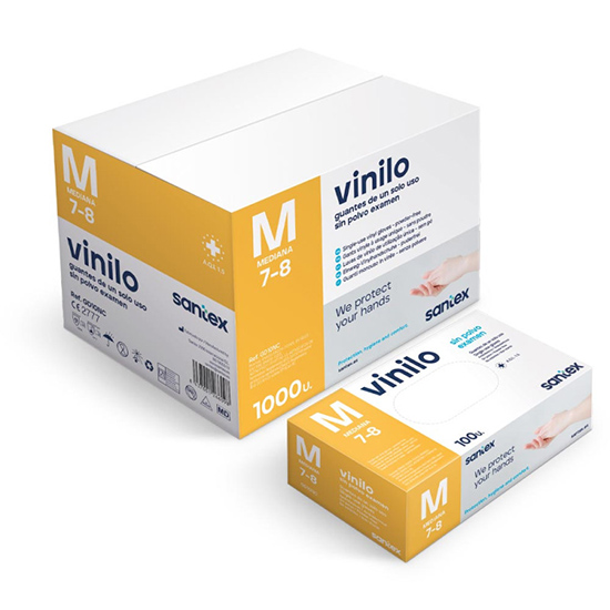 GUANTE VINILO SIN POLVO 4,5GRS . TALLAS S,M,L,XL